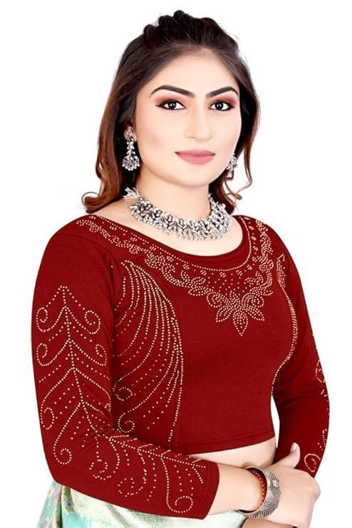Full Diamond Stylish Readymade Stitched Stretchable Blouses, Readymade Cotton Lycra Round Neck Full Sleeve Blouse for Women