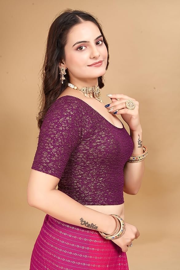 Readymade Shining Lycra Stretchable Round Neck Half Sleeve Blouses || Womens Mettalic Stretchable Readymade Blouses