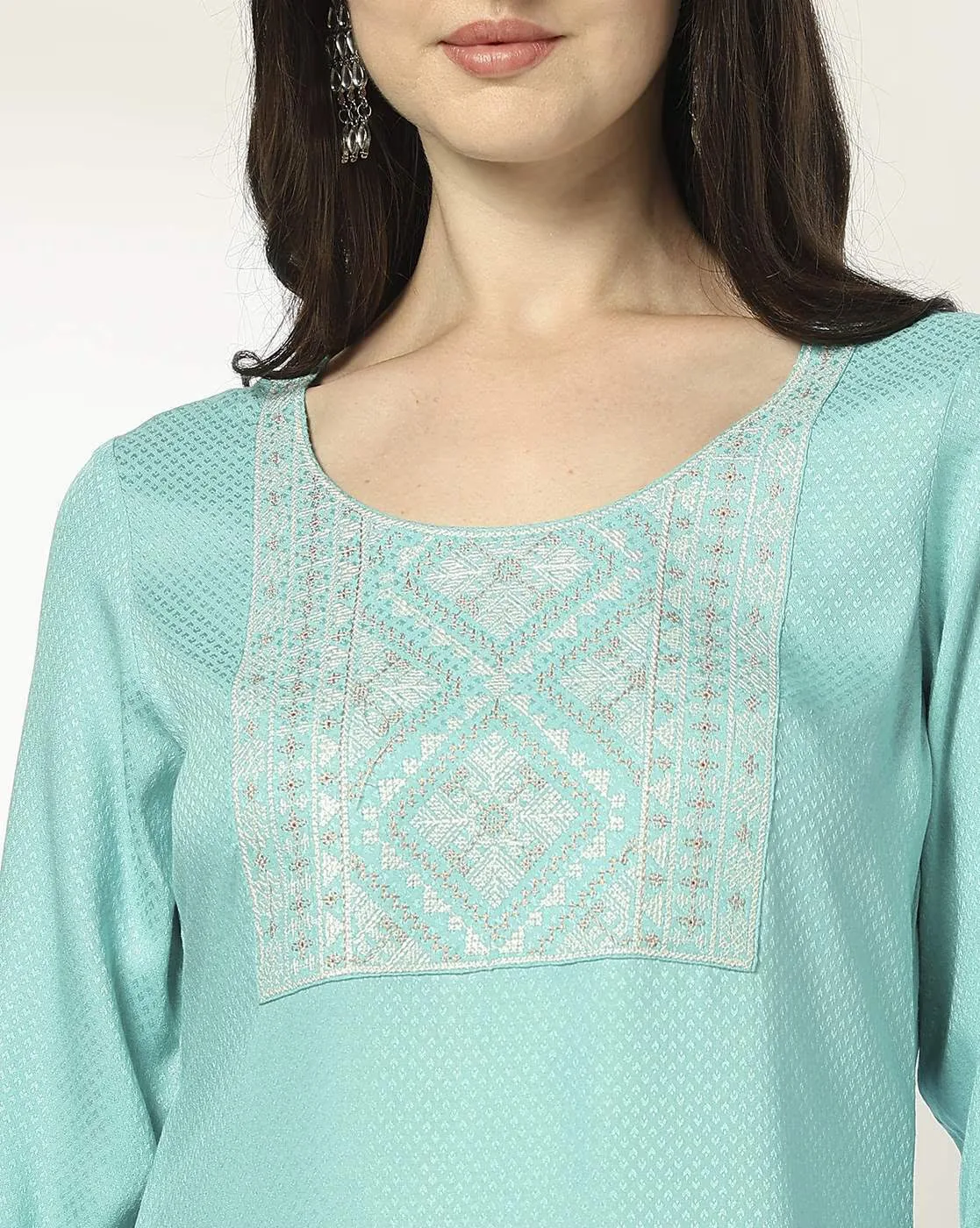 Women Embroidered Regular Fit Crew-Neck T-Shirt