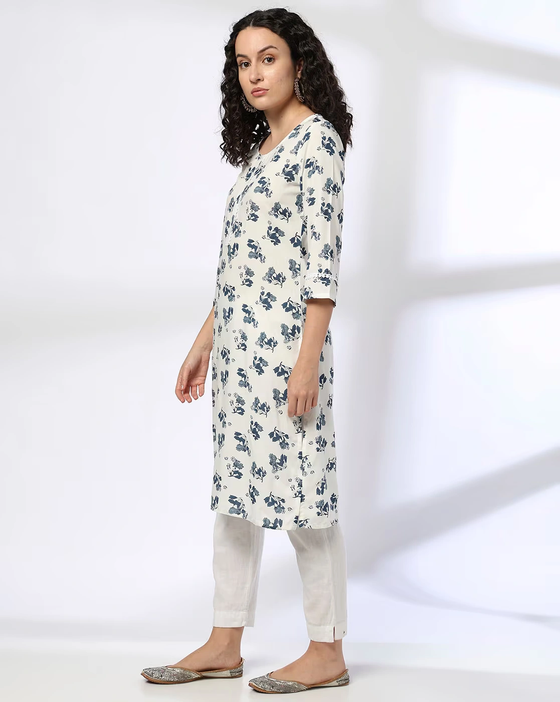 Women Paisley Print Straight Kurta With Neck Tie-Up