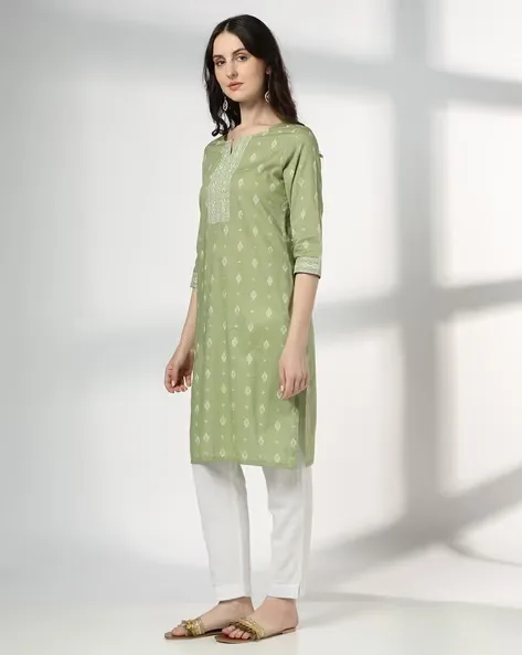 Women Paisley Print Straight Kurta with Neck Tie-Up