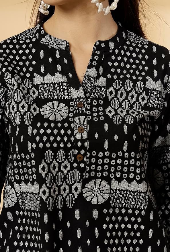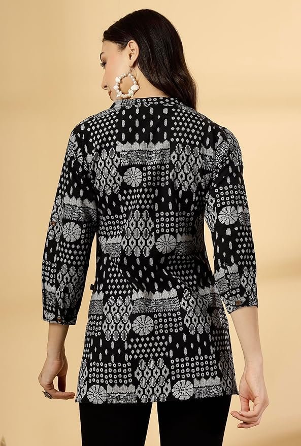 Polyester Women's Floral Placement 3/4 Sleeve and Keyhole Neck Printed Short Kurti (Copy)
